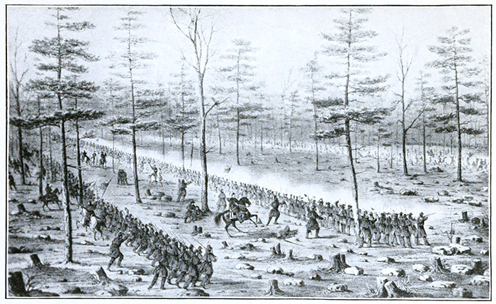 Four days of skirmishing and hard marching, with four nights of unrest and chilly misery bring us to our objective—the enemy. He has selected his battle ground on the bank of Stone’s River, a swift stream, in places fordable.