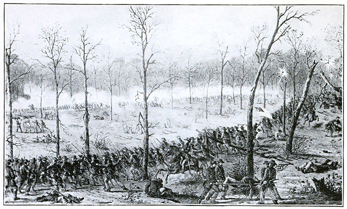 Charge of General Van Cleve’s division in the cedars, at the battle of Stone’s River, under direction of General Rosecrans.