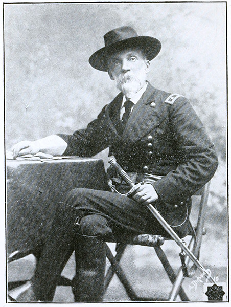 The days passed away and gave no sign of him until the fifth after my arrival, when a sorry figure rode to the front of my tent. Seated upon a mule that had upon him parts of wagon harness, was the Captain, a woful figure, with rueful countenance. Don [Pg 33]Quixote appeared not so disconsolate even after his battle with the knights of the windmill. We would have laughed aloud at his sorry plight had his aspect not been so serious. “For God’s sake, food and drink!” he cried. Being properly refreshed, he told his tale of woe. The train of wagons was proceeding slowly along the weary road, when sharp firing at its front evidenced an attack. Wheeler’s cavalry had crossed the river and was on one of the raids in our rear that made the name of General Joe Wheeler one with which to scare teamsters and worry commanders.