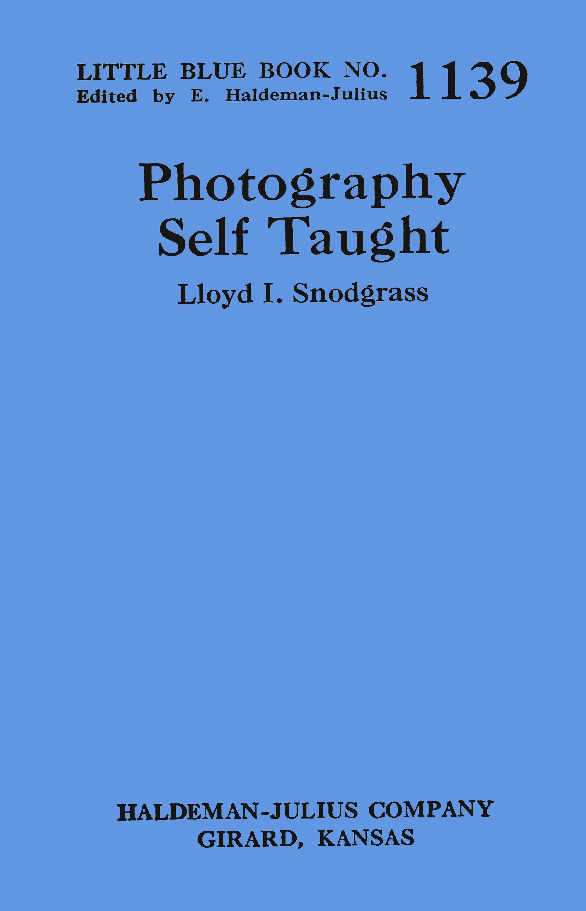 Photography as it exists today covers a very broad field, and many books have been written on the subject as a whole and its various phases. In compiling the material for this Little Blue Book, an attempt has been made to include only those topics which will be of interest and assistance to the average amateur photographer. Scientific processes are explained in such a way that the beginner, with no previous experience in the making of pictures, should be able to understand the various steps as they are taken up, and to get good pictures. The last chapter is devoted to the scope of photography, its practical applications, and to some of the developments that are now taking place.