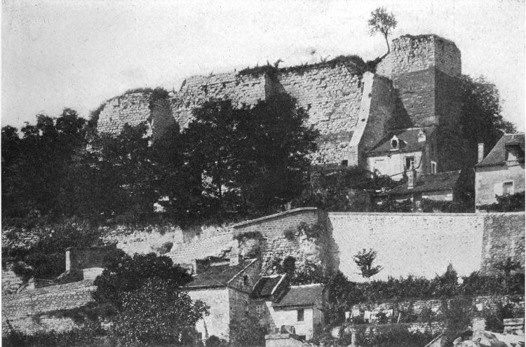 About the beginning of the Sixth Century, St. Ours came to Touraine to settle at Loches. There several monks placed themselves under his discipline. The monastery of St. Ours made a town of Loches. As has often been remarked, the people of the country like to group around these religious houses where they find at the same time a church with its spiritual aid, a refuge always open against the persecution of the mighty, a school, a hospital, and a model farm with its agricultural and industrial instruction. In a few years the collection became sufficiently important for the establishment of a castrum. This strong castle, which was already in existence at the time of Gregory of Tours, was placed in a position that was very [381]easy to defend: it was protected on one side by that elbow of the mountain to which St. Ours had retired and by the escarpment towards the Indre, a flank that was rendered almost inaccessible by the river and the valley marshes; on another, by the natural depression of the vale of Mazerolles; and, on the third, by a deep and wide cutting in the chalky tufa. The castle which crowned the hill and commanded the surrounding country was so strong for that age that all conquerors contended for its possession.