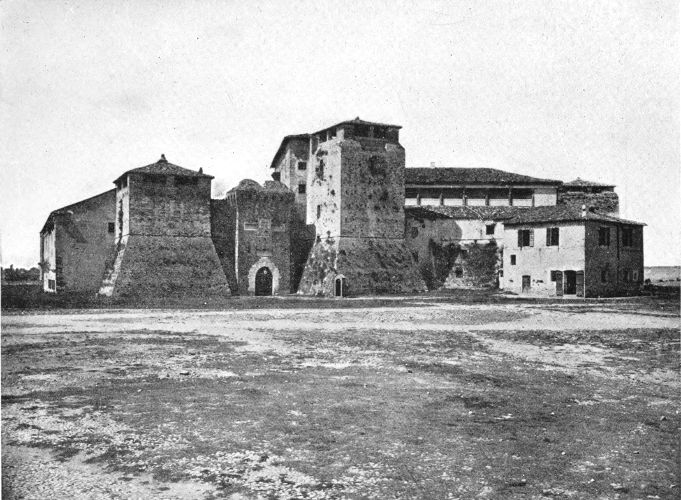 So imposing a mass should certainly have triumphed over time, but it has been disfigured at the pleasure of succeeding generations. Upon the ground where we walk while regarding the present façade, is dug the first enclosure,[356] a large moat a hundred feet wide and thirty-five feet deep, to-day filled up and forming a platform. We find no longer the six towers, eighty feet high, destroyed by Urbain VIII. (1625), who has also given his name to the building for more than a century,—Castello Urbano. Finally, in 1826, the first circuit was razed, and, the moat having already disappeared, they did away with the drawbridge. It is nothing more than a prison, through the gratings of which we see the red caps of the prisoners who come to gaze upon a bit of blue sky.