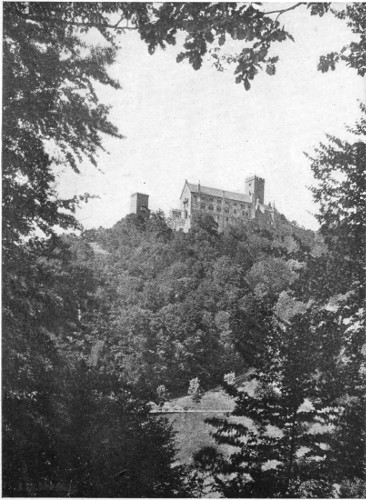 The Wartburg lies on the north-western slope of the Thuringer Forest at the top of a spur that commands an extensive view over the fruitful fields and woody Thuringian ridges. If the traveller has enjoyed the prospect during the ascent, he is engrossed by other feelings as soon as he has passed through the gateway into the old stronghold and mentally rehabilitates the entire castle as it was in days of yore. For the Wartburg is not only memorable as having been the abode for a century of the powerful landgraves of Thuringia who had their court here from the time this hold was built by Ludwig II. at the end of the Eleventh Century (1080 A. D. is usually considered the year of its completion) to the extinction of his line with Heinrich Raspe in the middle of the Thirteenth Century, but it has also acquired a classic repute in German history by three important occurrences: the famous Singer-war, the life of Saint Elizabeth, and Luther’s sojourn here.