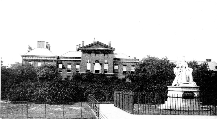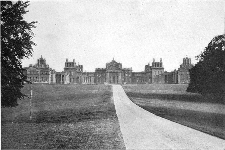 Passing through a gateway on the opposite side of the quadrangle, we had before us the noble classic front of the palace, with its two projecting wings. We ascended the lofty steps of the portal, and were admitted into the entrance-hall, the height of which, from floor to ceiling, is not much less than seventy feet, being the entire elevation of the edifice. The hall is lighted by windows in the upper story, and it being a clear bright day, was very radiant with lofty sunshine, amid which a swallow was flitting to[393] and fro. The ceiling was painted by Sir James Thornhill in some allegorical design (doubtless commemorative of Marlborough’s victories) the purport of which I did not take the trouble to make out,—contenting myself with the general effect, which was most splendidly and effectively ornamental.