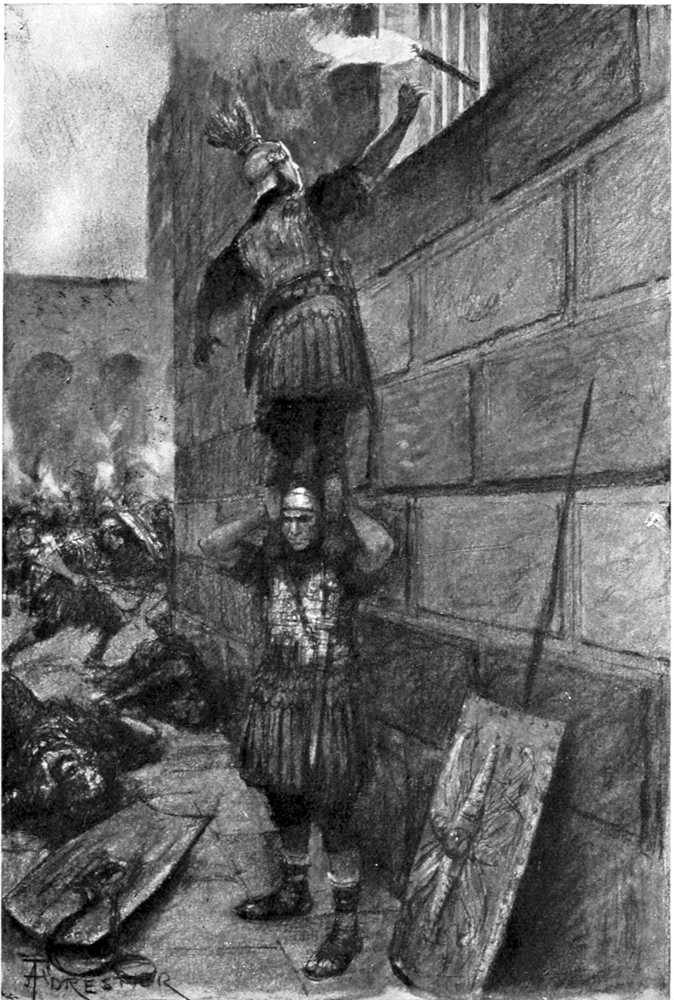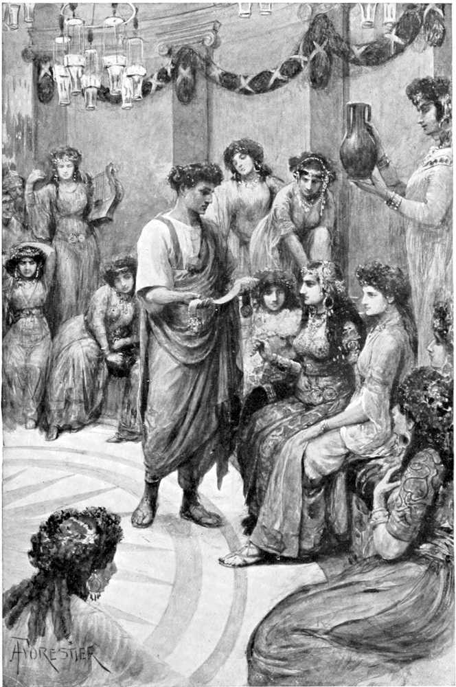 Crispus, whose age was perhaps twenty-five years, had a powerful yet graceful figure, eyes of a deep gray, crisp hair of a bronzed hue, and a handsome face, as clear cut as if sculptured from marble, a face whose pure complexion spoke of pure living—a rare virtue in that age!—a face whose keen, ardent look gave promise that its owner was one born to achieve distinction, if indeed he had not already achieved it. “An antique Roman,” one would say on seeing him, since he still adhered to the wearing of the stately toga, which in the first century was fast becoming superseded by the Grecian tunic; moreover, the ring on his finger was not of gold, but of iron, in accordance with ancient usage.