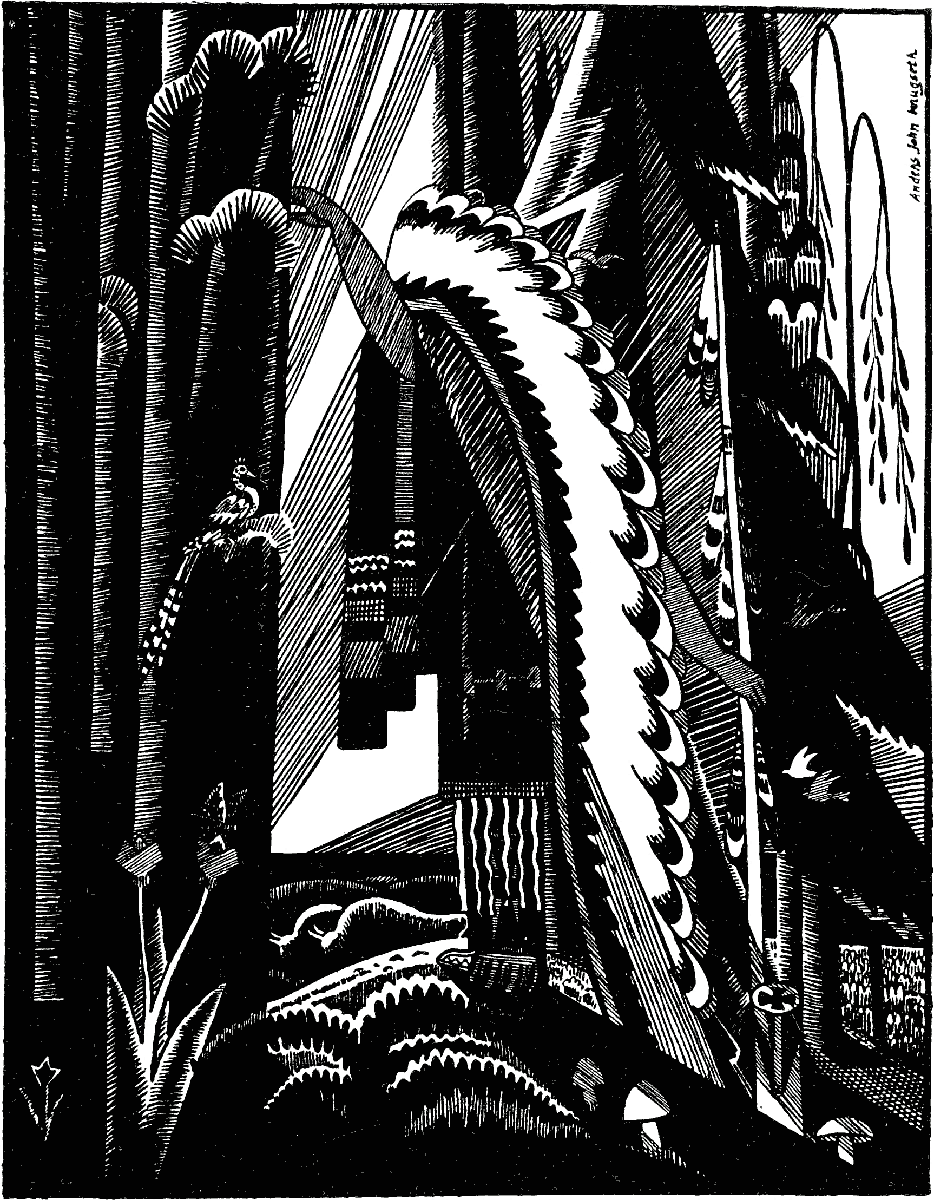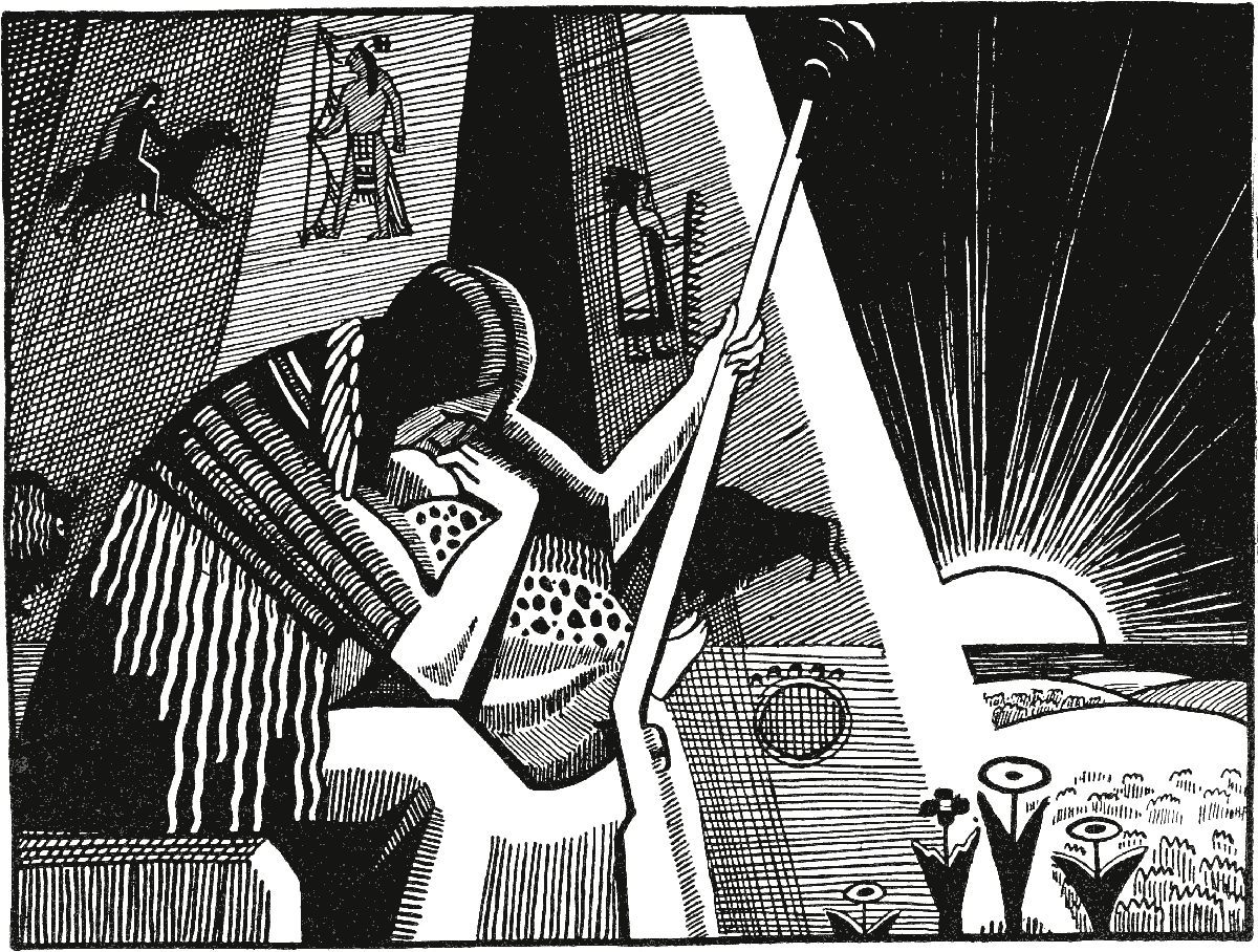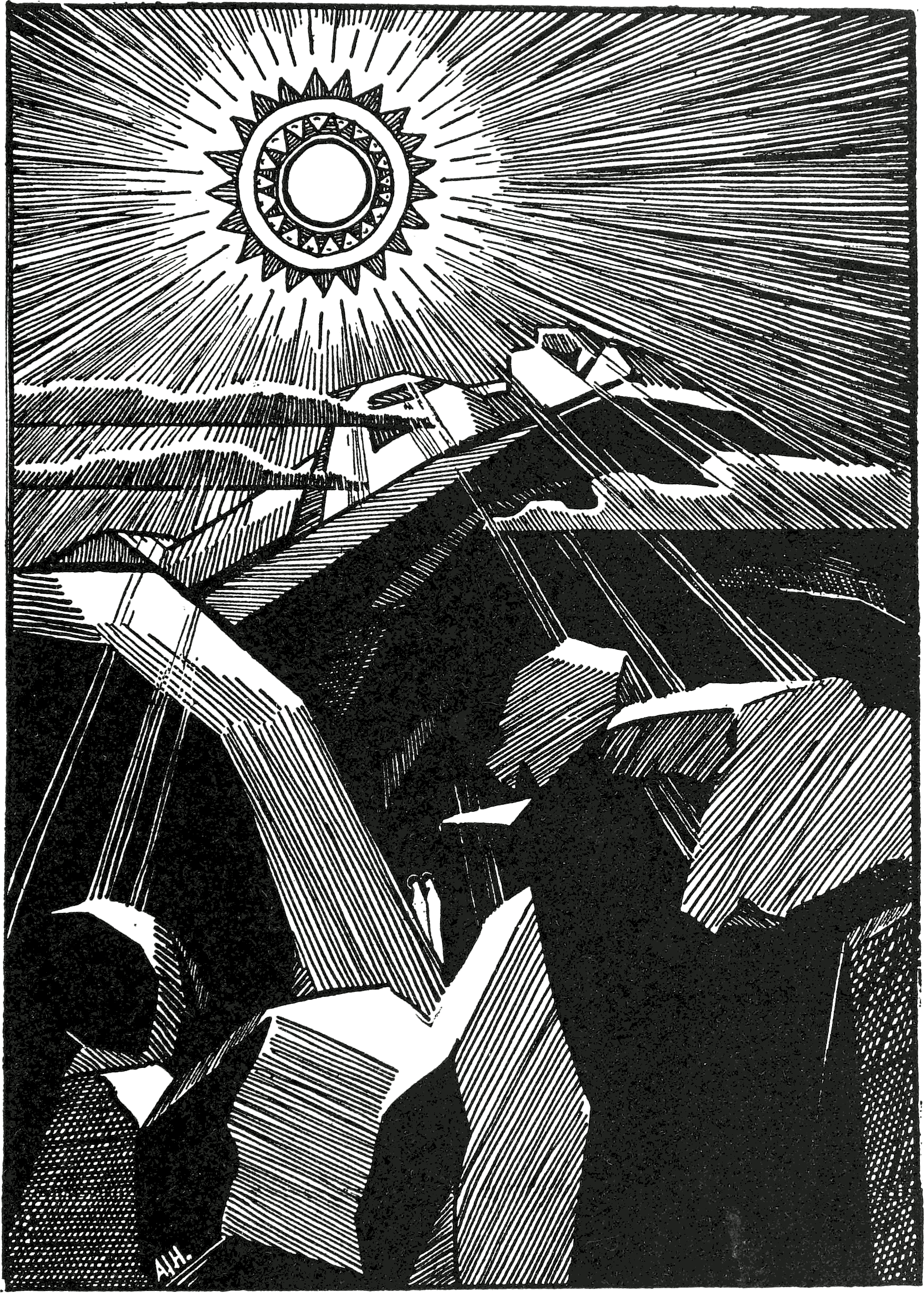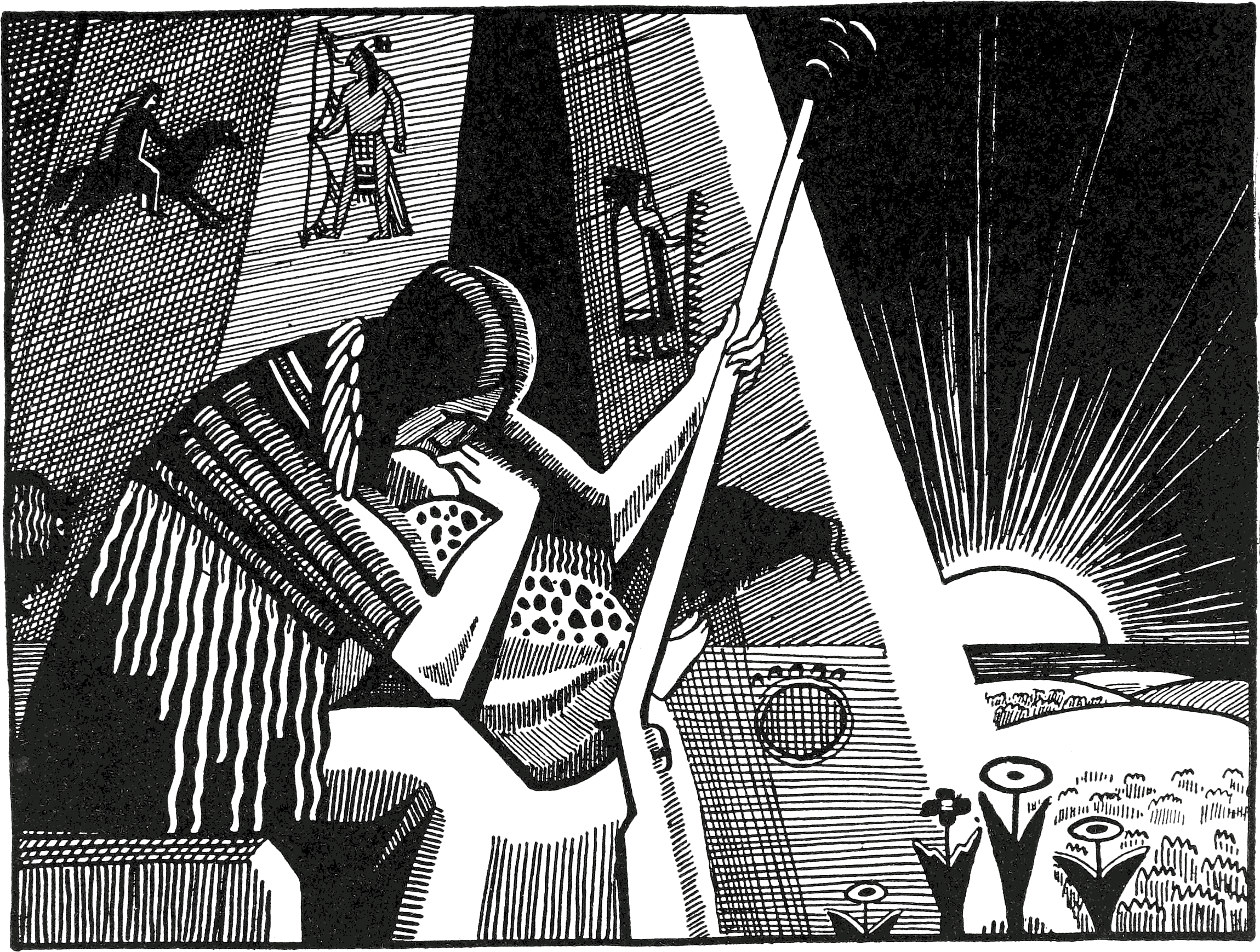 Earth’s Terraced Bowl is an interpretation of the imagery of this Pueblo art-in-life. Its purpose is to aid in our comprehension of a beautiful and ancient culture, setting the coloristic and symbolic elements into relationship with the life which they express. The site described is the plateau above the Rio Grande, at the foot of the Sangre de Cristo range, where Santa Fé is built over the ruins of an ancient pueblo, and in its modern development is bringing into new expression the art and architecture of the ancient peoples. The images chosen are, first, the Pueblo woman potter, fashioning her ceremonial bowl, of which the terraced rim is emblem of the cloud-terraces that rise above the mountains in ever-changing variety; second, the man drilling emblematic beads of shell and turquoise, of jet and abalone, such as these Indians have used from beyond the dawn of history; third, the great mid-summer dance, now devoted to the mystery of the union of heaven and earth as it appears in vegetation and in the life which is dependent upon vegetation; and fourth, the festivals of fertility and of harvest, which complete, as it were, the definition of the life of man in this simple setting.