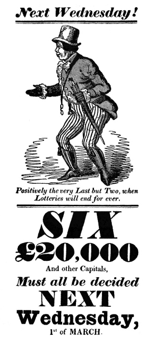 On August 13, 1836, was passed an Act (6 and 7 Geo. IV. c. 67) which [Pg 331] had been found necessary, “to prevent the advertising of Foreign and other illegal lotteries,” and the penalty for advertising them was full costs of suit and a fine of £50, one-half of which was to go to the informer.