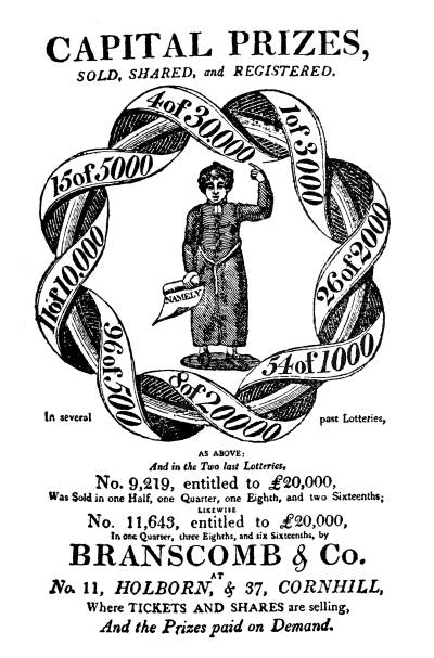 “The £20,000 prize, drawn on Friday, is divided amongst a number of poor persons: a female servant in Brook Street, Holborn, had a sixteenth; a woman who keeps a fruit-stall in Gray’s Inn Lane, another; a third is possessed by a servant of the Duke of Roxburghe’s; a fourth by a Chelsea carrier of vegetables to Covent Garden; one-eighth belongs to a poor family in Rutlandshire; and the remainder is similarly divided” (Times, March 19, 1798).