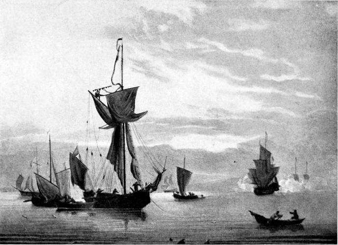 [593] There are fourteen sea-pieces by him in the National Gallery; eight in the Wallace collection at Hertford House; and several at Hampton Court. At Dulwich are two pictures by him, “A Calm” and “A Brisk Breeze” that are especially attractive examples of his style.