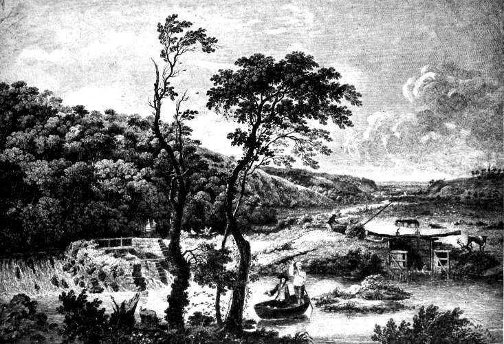 [616] There are several landscapes by Wilson in the public galleries of London. Two large canvases in the National Gallery, “The Villa of Maecenas” and “Niobe,” were painted for Sir George Beaumont and by him presented to the nation in 1726. They are heavy and dark pictures and do not so satisfactorily represent Wilson’s genius as do some of the eight smaller landscapes in the same gallery, notably the charming little picture “On the River Wye.” In the South Kensington Gallery there are six landscapes by Wilson with several others “by or after” him. The most effective of these is a “Landscape Composition” in the Italian style. At Dulwich is a fine Italian picture, “The Cascatella and Villa of Maecenas near Tivoli.” A more nearly adequate idea of Wilson’s work may be found in the Manchester Art Gallery where, besides a fine example of his Italian pictures, a large canvas entitled “Cicero’s Villa,” are one of Wilson’s most triumphant Welsh pictures, the “Welsh Valley with Snowdon Hill,” and a magnificent English scene, a “Landscape with Ruins.” The Art Gallery at Glasgow has one of the loveliest and most mysteriously suggestive of Wilson’s pictures, called “The Convent Twilight;” and a delicate little Scotch landscape (exhibited 1762) entitled “View of Holt Bridge on the River Dee.” It is apparent that most of Wilson’s pictures are in private galleries. In 1814 there was an exhibition of his works but they have not been brought together in any great number since. Some of his sketches had been published at Oxford in 1811 under the title “Studies and Designs by Richard Wilson, done at Rome in the Year 1752.” In 1825 appeared a book of forty etchings made by Mr. Thomas Hastings after the pictures in the Ford collection, a notable collection that came into the possession of Lady Ford through her brother and her husband both of whom had been admirers of Wilson’s work. In 1863 there appeared “Thirty-seven Sketches and Designs in Crayon” by Richard Wilson, R.A. (London, William Tigg). Probably the best place to study Wilson’s pictures as a whole is the Print Room of the British Museum where there are forty-five engravings from his work, several of these engravings being exceptionally fine reproductions. Wilson has been fortunate in the fact that his landscapes have appealed to the best engravers and etchers. Besides the “Six Views in Wales” already spoken of there were “Twelve Original Views in Italy” published by Boydell in 1776, and very many single pictures have been reproduced. The prices brought by Wilson’s pictures have been in modern times fairly large. In 1875 his “View on the Arno” brought 1,800 guineas. “An Evening Scene in Wales” brought 380 guineas. Some of the engravings also bring high prices, especially those of Woollett.