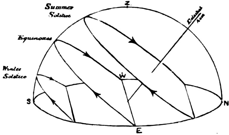 | 6.— | Apparent Paths of Sun at Equinoxes and Solstices | 56 |