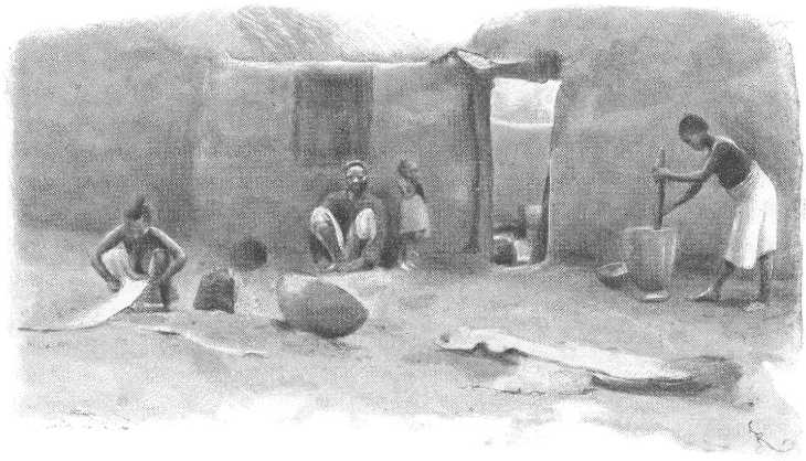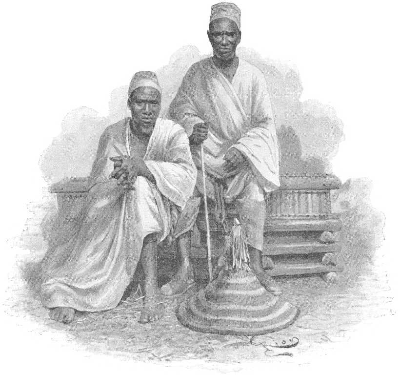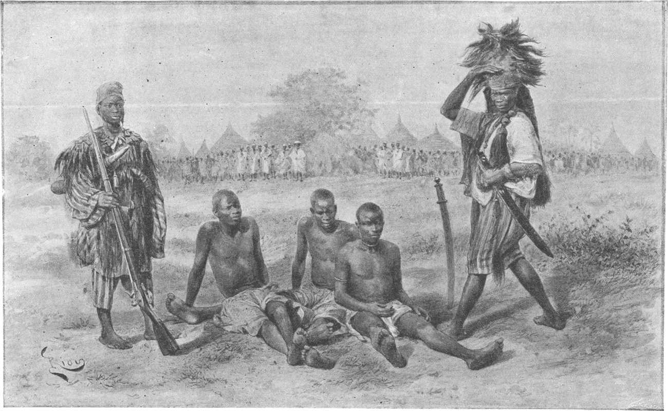[16]Il ne faut pas prendre cette expression manger dans son sens littéral. Les langues noires sont généralement peu riches, elles ne disposent que d’un nombre restreint de mots pour exprimer des idées similaires. Un individu, riche parce qu’il a de nombreux captifs, devient pauvre parce qu’il les vend et en dissipe le produit. Il a mangé ses captifs. Un autre commet adultère avec la femme de son voisin ; il lui a mangé sa femme. Un chef de bande s’empare d’un village, on traduit : un tel a mangé tel village. Ne disons-nous pas nous-mêmes : tel homme a mangé sa fortune, alors que, sous forme d’argent, ce serait un aliment de digestion difficile ?