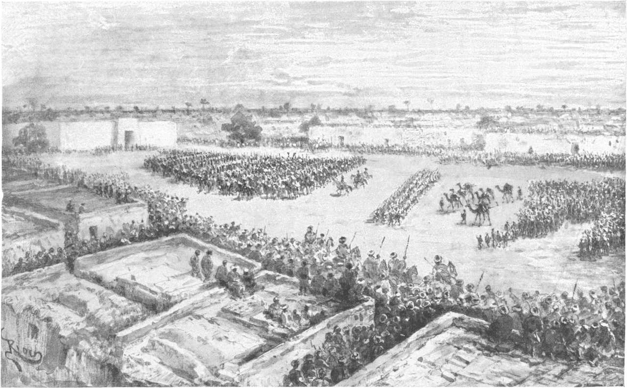 [6]Les Anglais occupent l’Égypte contre toute justice, les Mahdistes se sont emparés de Khartoum, coupant les communications de la Basse-Égypte avec le Soudan égyptien. Vainement on a essayé de repousser au Kordofan et au Darfour les bandes du Mahdi et d’Osman-Digma : Hicks-Pacha a péri avec toute sa colonne, lord Woolseley a vu sombrer sa réputation militaire aux cataractes de Wady-Alpha.