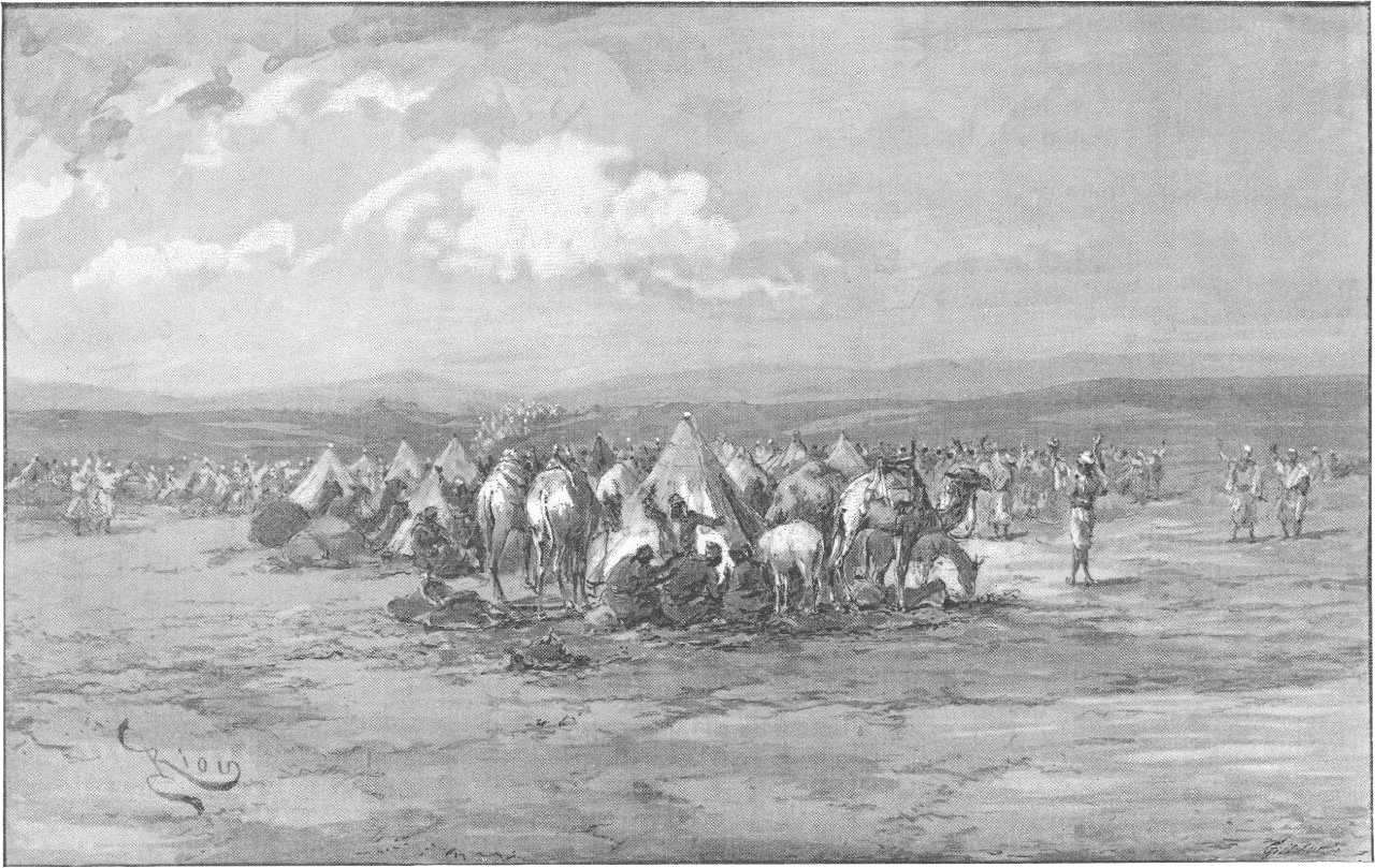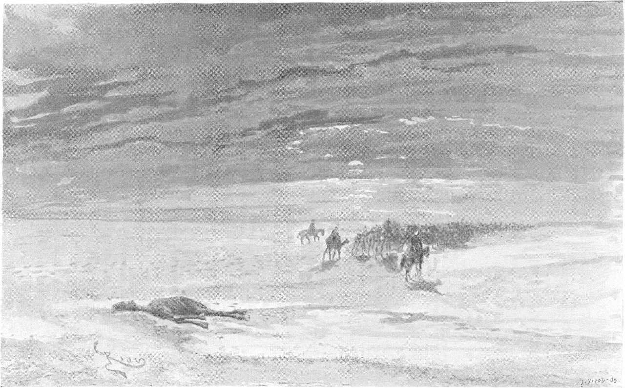 [41]Sorte de graminée jaune de 20 à 25 centimètres de hauteur et qui est le seul fourrage qu’on trouve dans le Sahara pour les chevaux. Les chameaux aussi l’aiment beaucoup.
