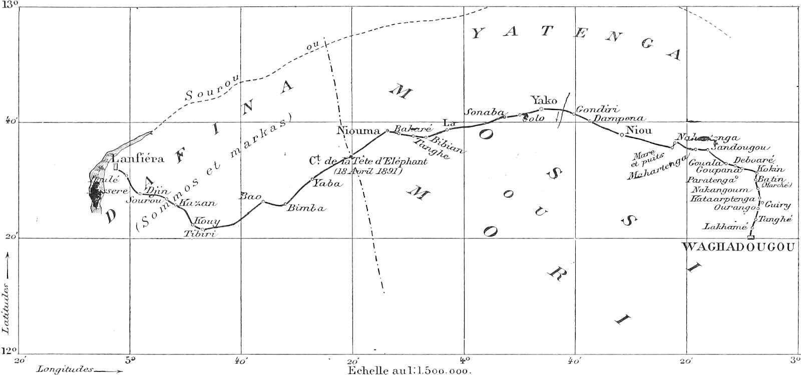 Le livre que je présente aujourd’hui au public est le récit de mon exploration au travers du Soudan et du Sahara pendant les années 1890, 1891 et 1892.