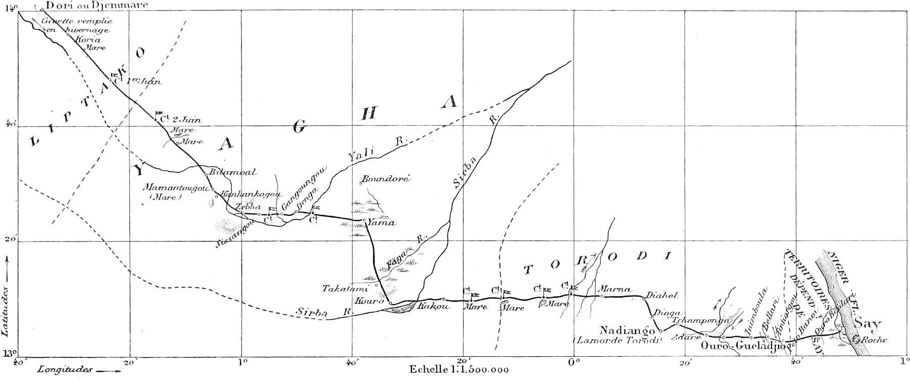 Une ligne partait de Say sur le Niger pour aboutir à Barroua sur le lac Tchad, laissant dans la sphère d’influence anglaise tout ce qui appartenait équitablement à l’empire de Sokkoto.