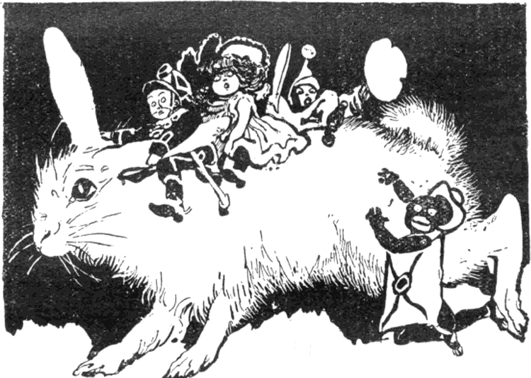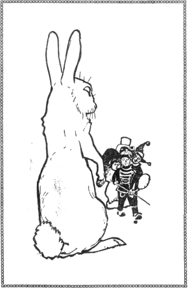 A nyúl nem értette ugyan meg teljesen a dolgot, de azért ráállt. Jancsi elvezette a kutyaólhoz és bemutatta -13- társainak. Mikor a nyúl meglátta a babát, csodálkozva meresztette rá nagy üveges szemeit, a szerecsentől kissé megijedt s izgatottan mozgatta orrát.