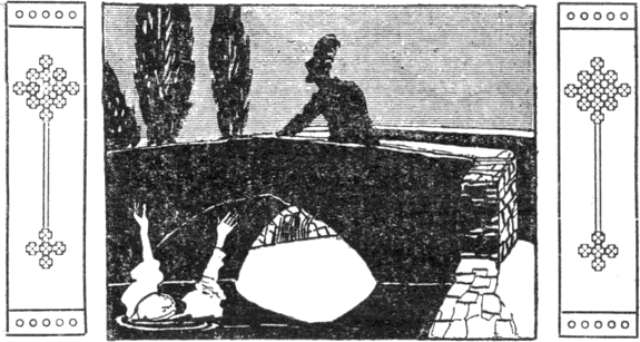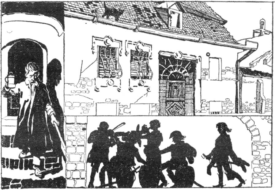 A bujdosók, a huszárral élükön, tovább mentek. A folyosón találtak egy elejtett kötőtűt; a huszár magához vette, jó lesz lándzsának.