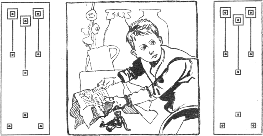 – Ohó! Ohohó! Szöktök? Szöktök?! – kiáltotta most egy hang a homályból. Nem Kokó volt, hanem egy förtelmes kis néger, ki egyéb csecsebecsék társaságában a sarokállványon állt. A bujdosók látásból ismerték, de nem barátkoztak vele, nagyon közönséges gipszfigura volt, egyebet se tudott, mint vigyorogni.
