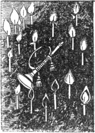 Alig haladtak néhány lépést, midőn a baba, aki előre ment, ijedten fölsikoltott. Az utat egyike amaz éjjeli fenevadaknak állotta el, melyeket az emberek egereknek szoktak nevezni. Az egér csillogó szemekkel, haragos cincogással csapott eléjük. A huszár kardja után nyúlt, oh! most jutott csak eszébe (mit ismerősei előtt gondosan titkolni szokott), hogy a kardot nem lehet kirántani: egy darabból van készítve. Szerencsére ott volt Paprika Jancsi, az az egér orra előtt hirtelen összecsapta két réztányérját – csin! A fenevad megrökönyödött és hosszu szökésekben iramodott barlangjába.