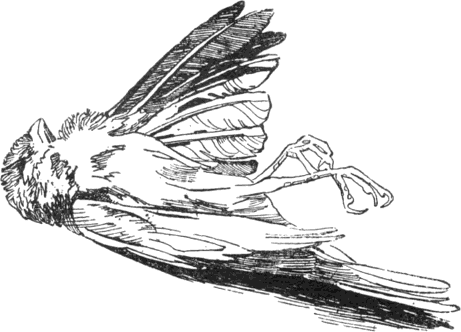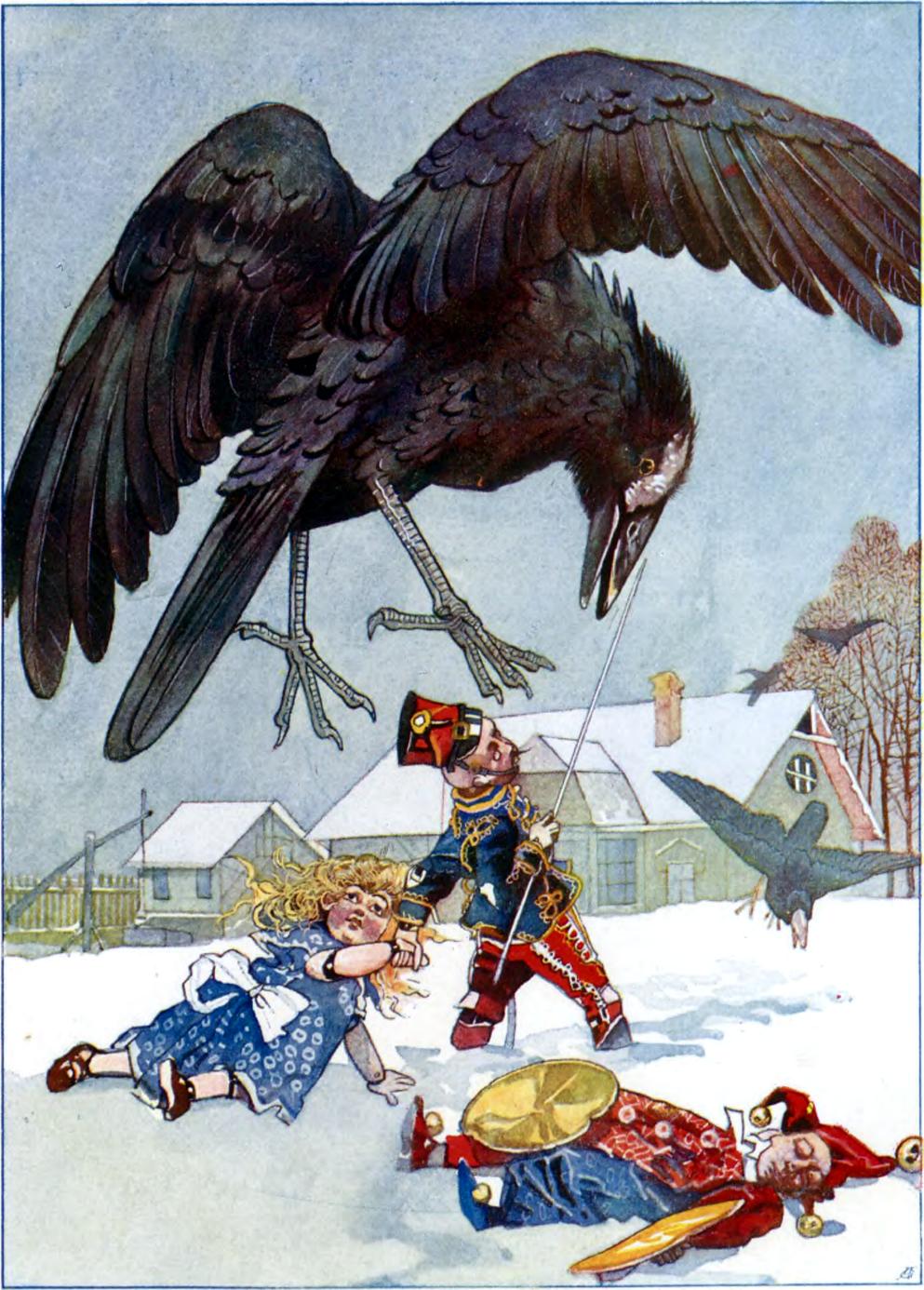 Az szegény rosszul járt, esésközben egy mérföldkőre zuhant és gyászos halálát lelte, gipszdarabjai ott feketéllettek a hóban. A baba elfedte szemeit az irtóztató látvány elől…