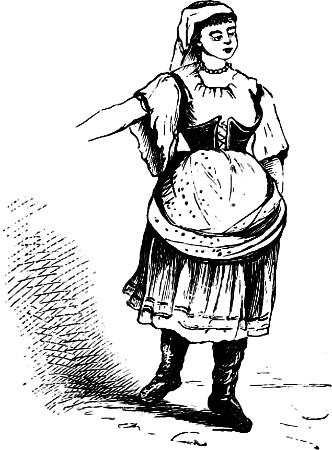 At the savage hour of one, a bell summons us to table d’hôte. We are only twenty guests, the other first-class passengers having, I observe, brought their provisions with them, which they partake of secretly and at odd moments in out-of-the-way corners, producing them from the depths of mysterious and cunningly-concealed pockets or baskets; the particular species of esculent being, as a rule, a portion of sausage, which the possessor cuts into thin slices with his or her penknife, and consumes ad infinitum.