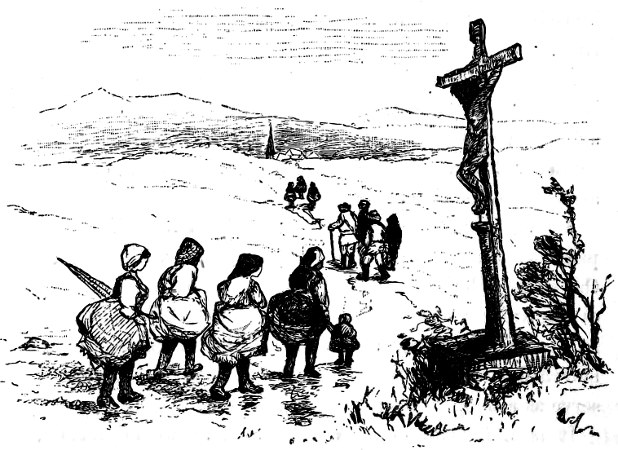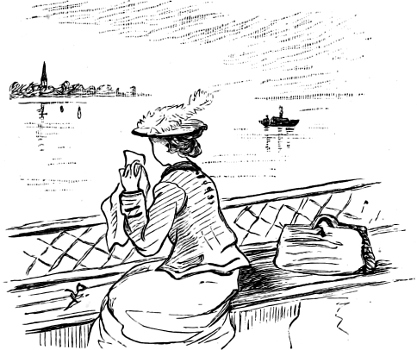 At length its battlemented heights begin to fade from sight, but the moon still links its distant shores to the steamer’s wake by a tremulous chain of glory. The top-booted Austrian officer departed with the last gleam of the setting sun, and our little Jeanette, alone this time, is once more leaning over the steamer’s side and looking down upon the moon’s pathway. Is it guiding her thoughts back, we wonder, to her lover? We welcome, at any rate, weeping eyes and downcast looks as a good omen; and, passing by the deck saloon, we see that she has placed her withered flower in water, and that—typical of her love—it is holding up its head again!
