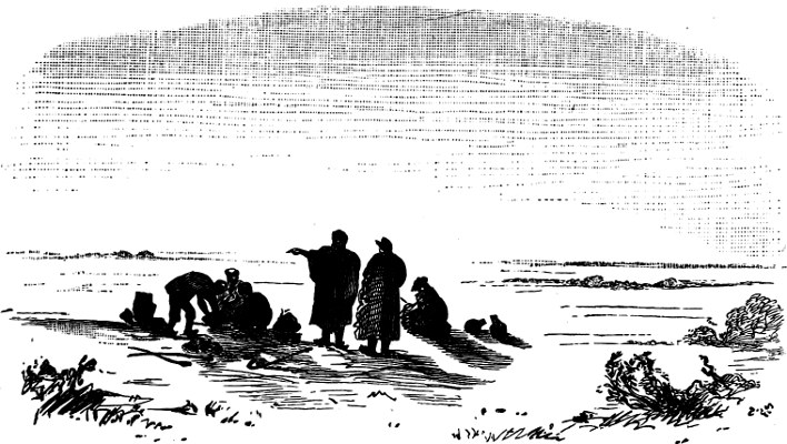 The island itself is full of wild-fowl—a “whir-r-r!” and away go a large flock skimming through the air, their[367] white wings gleaming like silver in the morning light; whilst here and there web-footed “water-ravens,” about the size of a small goose, are still seen roosting on the trees or standing on sandy promontories watching for fish.