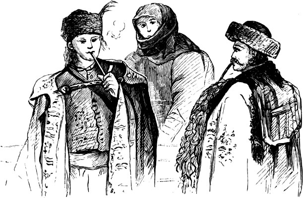 Close by us is a stalwart, broad-shouldered, and burly Bulgarian, who, having spread his rug also, makes the sign of the Greek cross, and, drawing his fez over his eyes, lays him down to rest. There are Roumanians too of every degree, from the tall, effeminate, and sallow-complexioned dweller in Bucharest, to the wild and uncivilised shepherd from the Wallachian mountains in sandalled feet. Amongst all these, the poor down-trodden Jews sit alone, despised of their neighbours—outcasts even here in this motley assemblage—the “pariahs” of Europe.