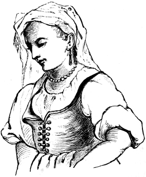 There are three or four Hungarian ladies on board, two fair-haired Teutons, and several officers in Austrian uniform, and there is of course the same amount of coquetting going on which is generally seen under similar circumstances. The dolce far niente life on these steamers is highly provocative of the tender passion, or its tender imitation, for everything conspires for the time against the sterner rules of society, and he who “finds mischief still for idle hands” must surely have a busy time of it with idle hearts in the height of the season, when the steamers are much fuller of passengers than they are at present. The warm and languid breeze fanning the cheeks; the dreamy “lap, lap” of the water against the sides of the vessel; the loitering, whispering couples under the shady awning; the dalliance of the storks on the green or golden shore, that arch their long white necks and clatter their beaks together as the manner of them is when flirting; the young newly-married couple, evidently on their honeymoon, that sit so close together, cooing in the shade of the deck saloon—are all in sympathy together, this hot and lazy day. Shall I except[349] the Turkish ladies, who seem to have scarcely moved a muscle since early morn, and who sit with their backs turned towards everybody, looking out drearily through their muslin bandages over the steamer’s wake? Yet once and again, as I passed in or out of our cabin, the younger lady drew aside her veil softly and almost imperceptibly as if by accident or by the natural stirrings of the wind, and displayed a pensive and somewhat pretty face. But did I not see thy small henna-tipped fingers give that gentle twitch? O thou daughter of Eve!