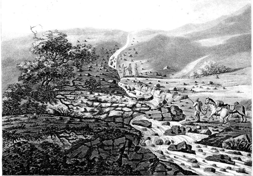 The spots of verdure and broken ground in the vicinity of this rude scene, the dark shades of rock, and beetling brows of the hills with which it is bounded on either side, form a spectacle as majestic and awful as 6the untaught imagination can paint, or that can present itself to the eye throughout the range of this island.