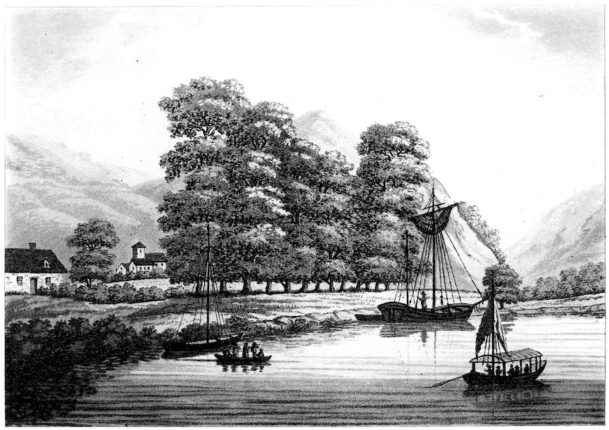 We were soon deprived of any further view of this elegant remain by a strong wind and tide, which quickly hurried us 145down the stream; but scenes like these, on which the mind has long dwelt in pleasing meditation, are not easily effaced by a mere change of place: they on the contrary are rather cherished by the preceding scenery, by the gloom of the rock, the repose of the meadow, and the stillness of the gliding stream; nor do they disappear till we mix in the busy hum of men, till we plunge into the more tumultuous scene of human life and human passions.
