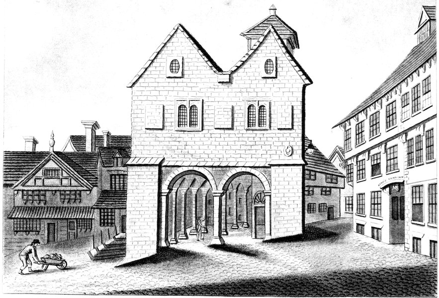 72Notwithstanding the disadvantage under which this building labors, I have yet considered the general view of which it forms a part as not devoid of interest, it comprises the house in which the man of Ross resided till his death, now known by the sign of the King’s Arm Inn. As every the most trifling circumstance relative to a character so highly distinguished by the pen of Pope, and still more highly dignified by the general voice of the people of Ross becomes interesting, I have here thought fit to give a view of the house in which he resided, and the adjoining buildings.