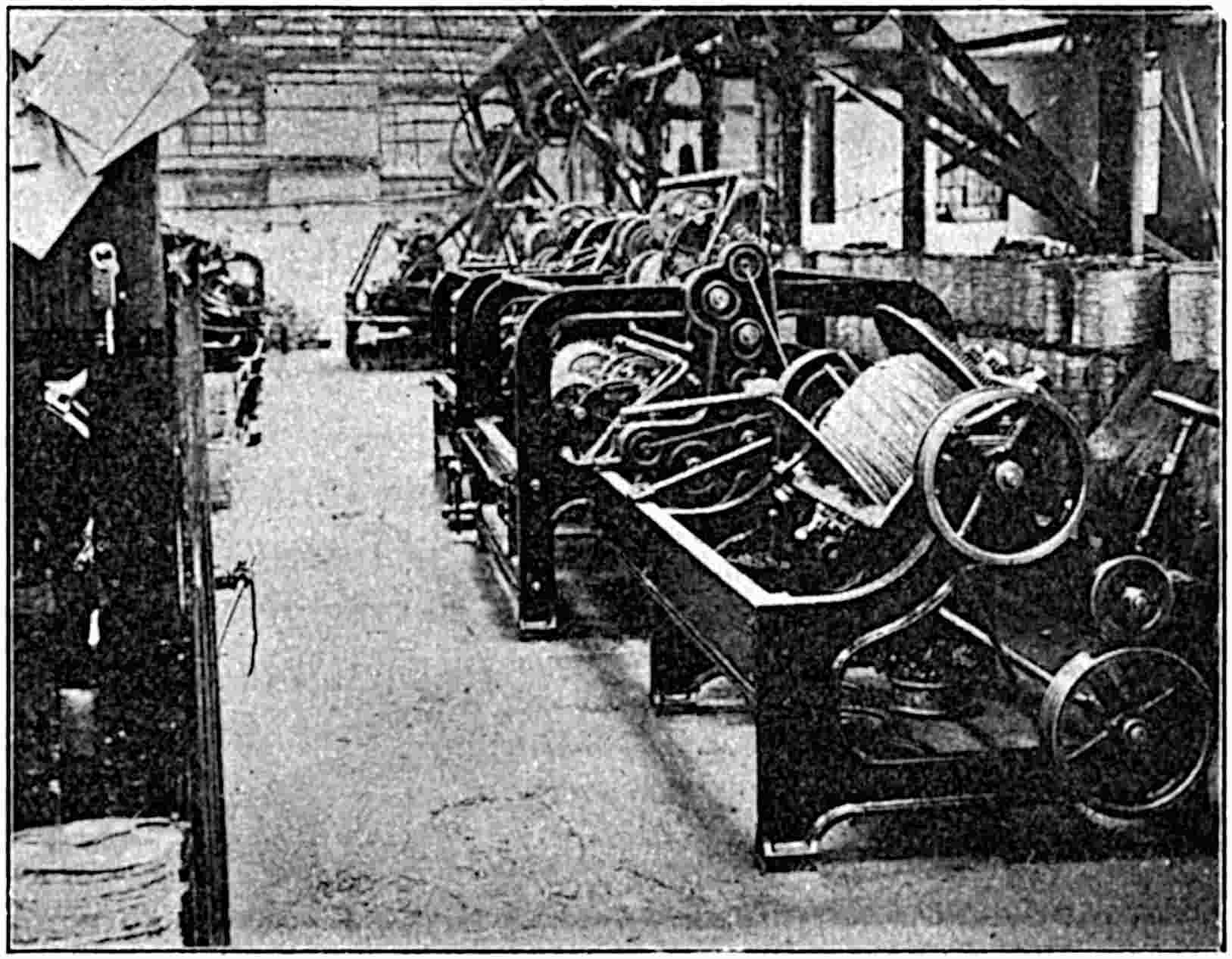 Although the various house machines represent the latest developments in the art of stranding and closing—the 102two essential operations of rope making—a modern rope and cordage works is provided not only with the various machines which have been illustrated and described, but also with a well-equipped rope-walk so that the products may include a great variety of cordage from the finest lines to the mammoth ropes for ships, steamers, harbours and heavy hauling purposes generally.