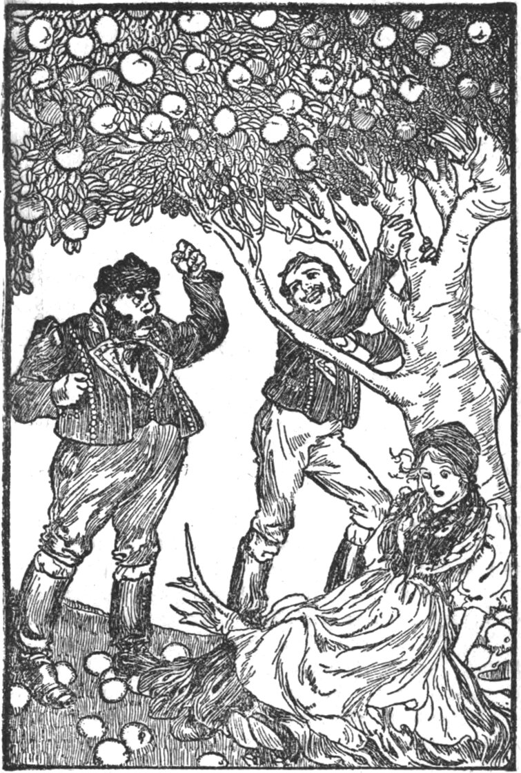 – De már ezt a kakukot megnézem, – mondta Koranda s szaladt a kertbe, mint a szél. Hát csakugyan ott volt a kakuk, már mint hogy Teréza. Nosza, jól megrázta az almafát, hullott az alma, mint a záporeső, de bizony lehullott Teréza is.