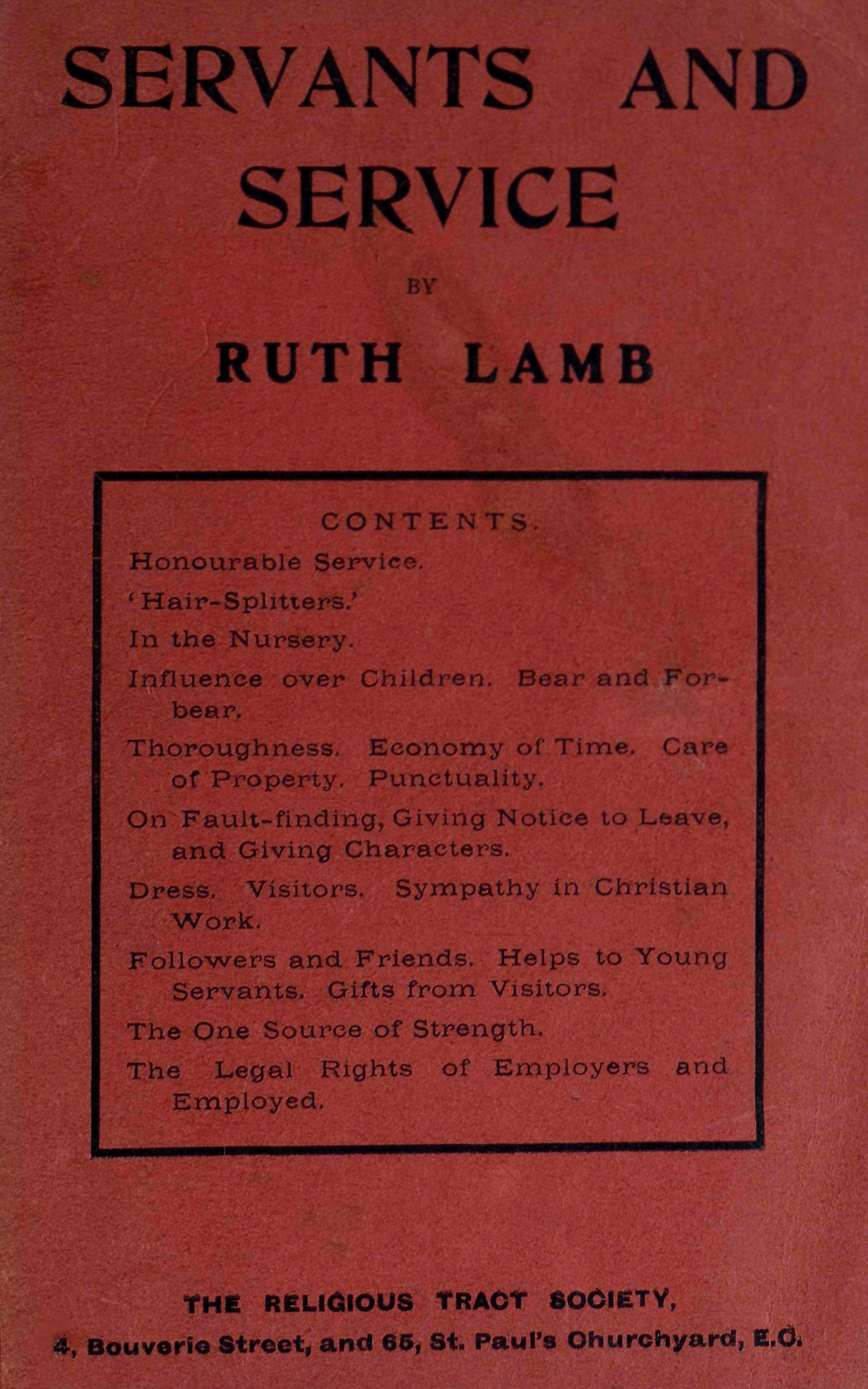 My object in writing has been to offer such advice to servants, and particularly to young ones, as may help them to take a higher view of their position, its trusts and responsibilities. To show them first how great is the influence they possess, and, secondly, how they may use it for good.