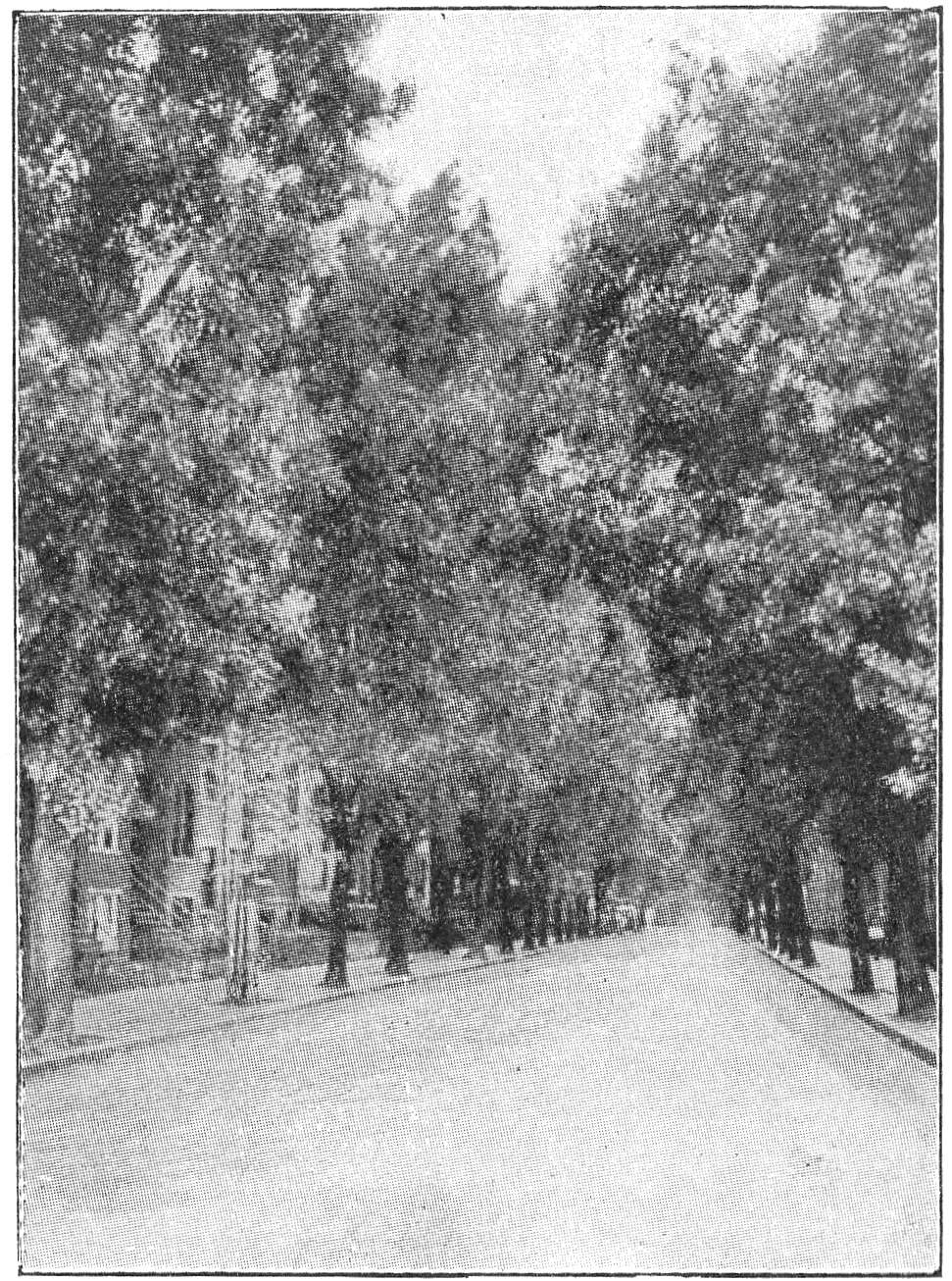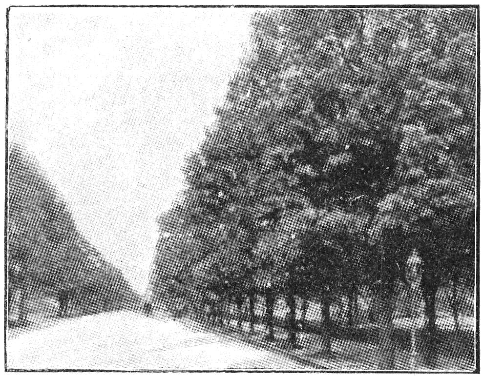 Min sakkunnige meddelare må ha rätt i dessa sina kanske väl pessimistiska förutsägelser om det framtida Washington, det vill jag visst ej bestrida, men bortser man från allt detta kommande akademiska kram lämnande de officiella planerna ur sigte och endast fästande sig vid hvad Washington nu är, skall man finna en förtjusande stad full af öfverraskningar och storslagna perspektiv, men, om jag så må säga, präglad af en slags förnäm hemtrefnad. En blommornas och den friska grönskans stad, genomkorsad af ståtliga avenuer och inbjudande gator, där högstammiga sycomorer, ekar, popplar, sällsynta japanska träd, plataner, akasior, lindar slå verkliga hvalf öfver körbanorna lämnande skugga och beredande välkommen omväxling. En mångfald pittoreska squares och staty- eller fontänprydda öppna platser göra dessutom ett väl beräknadt afbrott i det schackrutade gatsystemet, som tack vare sina väl hållna alléer och saftiga gräsmattor icke gifver samma enformiga och prosaiska intryck, som exempelvis New-York, ja hvarför inte vissa delar af Stockholm, där på de s. k. »malmarna» schackrutsystemet med hänsynslöshet infördes redan under drottning Kristinas tid vill jag minnas.