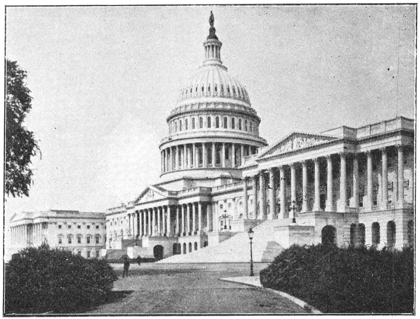 Den byggnad, som ger hela Washington en alldeles enastående prägel, och som utöfvat ett afgörande inflytande icke blott på hufvudstadens egen estetiska utveckling utan äfven otvifvelaktigt å byggnadsverksamheten i de olika staterna är det djärft tänkta, kupolbeprydda kapitoliet, den Nordamerikanska republikens riksdagshus, där Kongressen sammanträder och högsta domstolen har sina lokaler. Dess läge är präktigt, dominerande staden. Den västra fasaden med sina väl afmätta terasser, trappor och fontäner är mycket tilltalande, hvilket ej är förhållandet med den egentliga hufvudfasaden, den östra. Detta hufvudsakligen beroende därpå att kupolen, som tillkommit senare än själfva midtelpartiet, tilltagits för stor för själfva basen, som ursprungligen uppbar endast en mindre lanternin. Man har med rätta sagt att »här är en kupol med en byggnad under sig, då det i stället borde vara en byggnad krönt af en kupol».