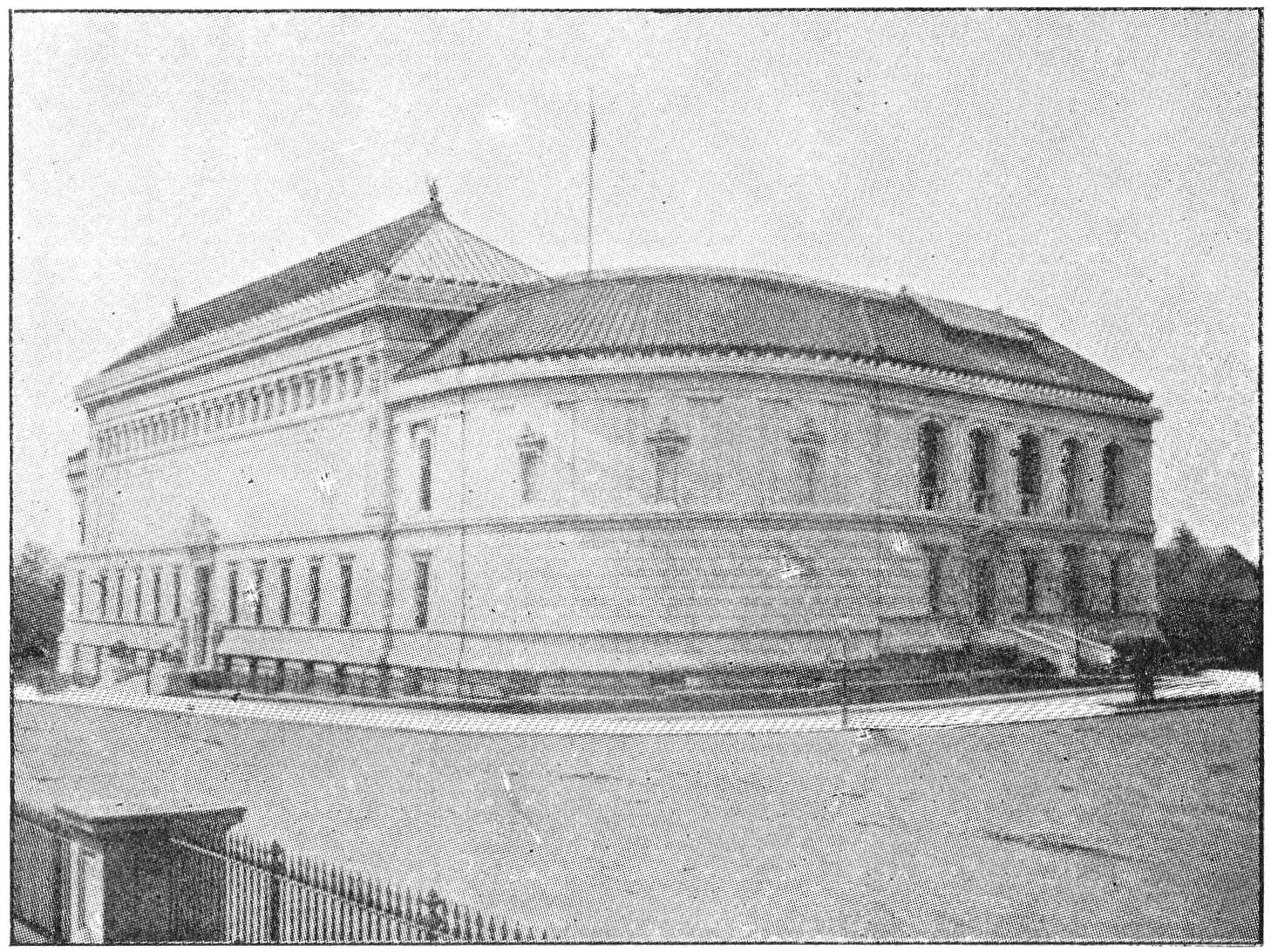 För den som har sinne för de modernare strömningarna inom byggnadskonsten och de sträfvanden yngre arkitekter i Europa och delvis i Amerika, särskildt i Chicago, tagit till rättesnöre är Washington i arkitektoniskt hänseende helt enkelt nästan onjutbart, isynnerhet om man betraktar de officiella byggnaderna såsom sådana och ej såsom delar af ett helt. Vare detta icke sagdt i afsikt att söka bevisa, att den på antika motiv baserade officiella arkitekturen i Washington vore oestetisk, långt därifrån, men man har så länge gått och njutit af klassiska motiv, af dessa slaviska kopior af den italienska ungrenässansen, eller af den s. k. georgianska stilen isynnerhet här i Amerika, där ingenting annat tyckes få insteg, att man verkligen med leda betraktar de många hvitskimrande palatsen med deras oundvikliga kolonnader, figurprydda pediment och monumentala yttertrappor. Man känner, att de ej höra hit, man längtar efter något annat, något som åtminstone är karakteristiskt för den stora republikens eget lif. Med få ord, om man icke just vill ha »skyskrapare», så vill man ha snart sagdt hvad som helst, men icke klassisk eller semiklassisk arkitektur.